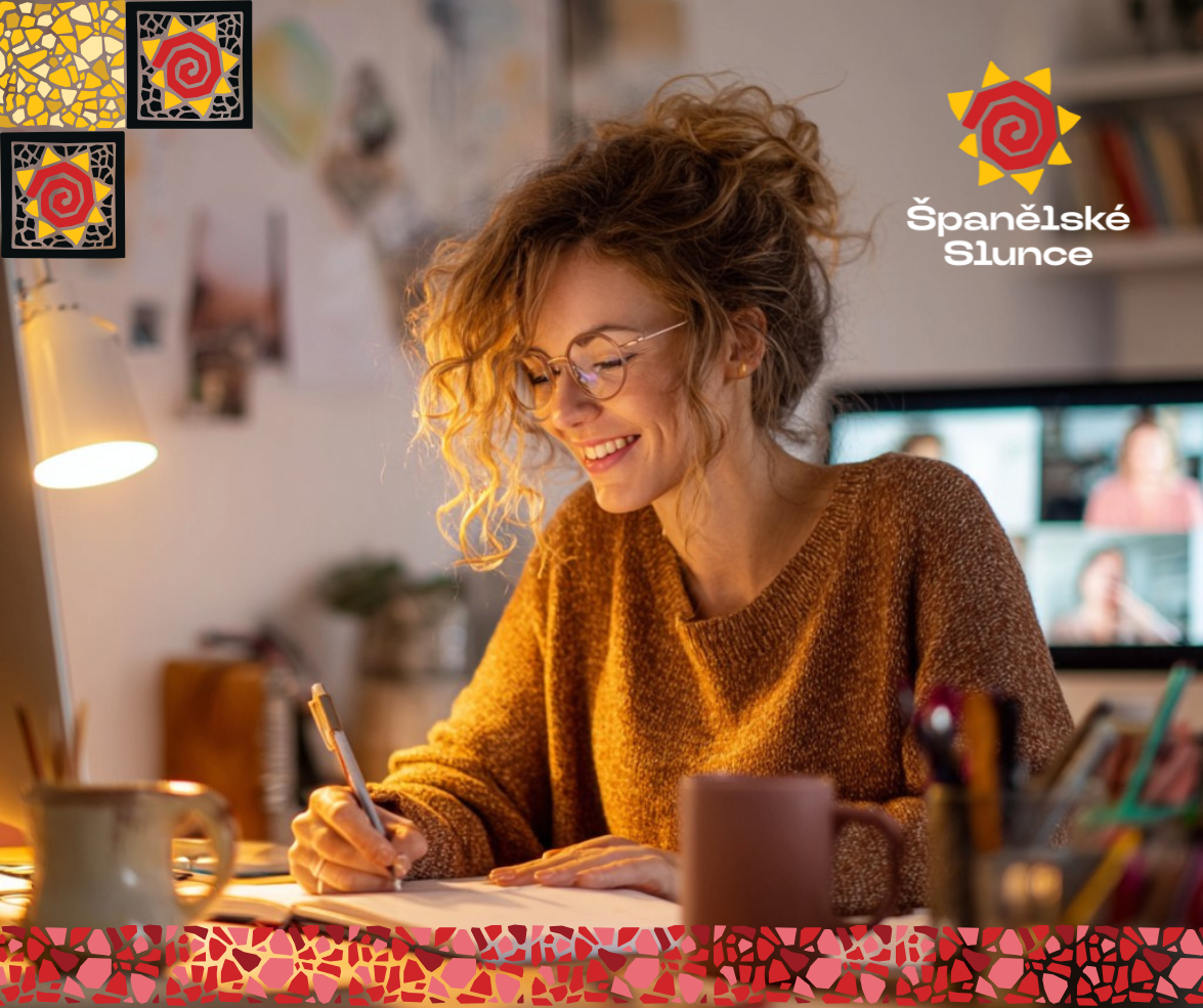 Krok 1: Začnete s večerním online kurzem na Online kurzy | Španělské Slunce – vyberete si úroveň, která vám sedí, a začnete pravidelně trénovat 2–3× týdně večer.